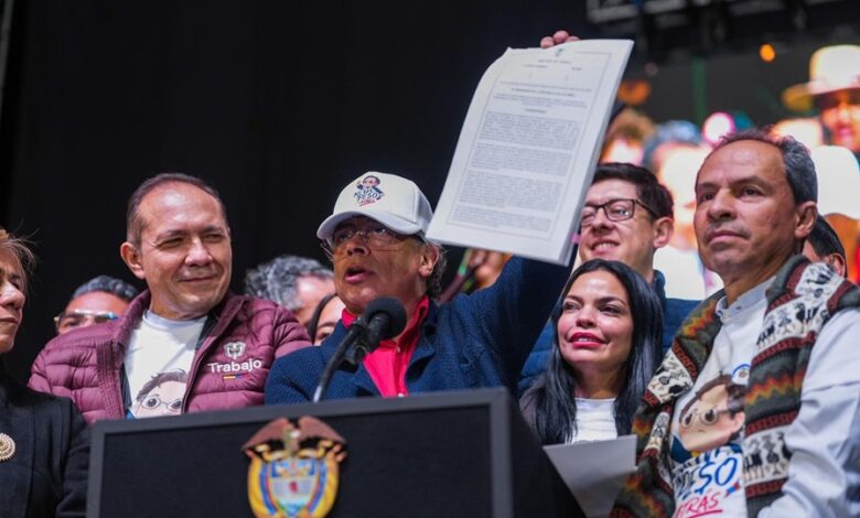 Durante su discurso ante los colombianos y colombianas, el mandatario firmó de nuevo el decreto que mantiene el Salario Vital en el 23.7 %, dejándolo en $2.000.0000. “Voy a ver presiones para tumbar de nuevo este decreto; ya no le corresponde al Presidente decir qué hay que hacer, porque los derechos y las conquistas del pueblo las hace respetar él mismo”, reafirmó el mandatario. También dio a conocer que ya inició la producción de los nuevos pasaportes.