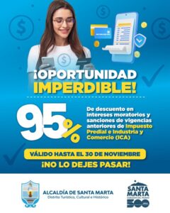 La Alcaldía Distrital de Santa Marta invita a todos los contribuyentes a que aprovechen esta oportunidad de regularización, evitar acumulación de sanciones mayores y acceder a condiciones favorables de pago.