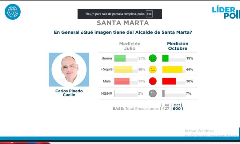 Entre regular y mala es calificada la gestión del Alcalde de Santa Marta, Carlos Pinedo Cuello, según la ultima encuesta sobre la favorabilidad y gestión.