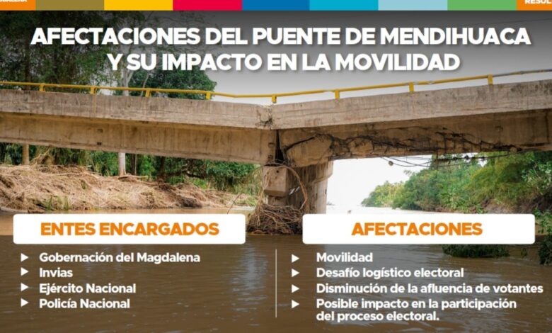 Al respecto, Nayara Vargas, Secretaria del Interior de la Gobernación del Magdalena, manifestó: “Estamos trabajando de manera articulada con el Gobierno Nacional e Invías para dar una solución pronta a esta situación. Nuestro principal objetivo es garantizar que las comunidades afectadas por la caída del puente de Mendihuaca puedan movilizarse sin inconvenientes y ejercer su derecho al voto el 8 de marzo. No permitiremos que una emergencia vial limite un derecho fundamental como lo es la participación democrática.”
