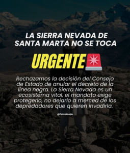 La decisión del Consejo de Estado de anular el Decreto 1500 de 2018, que reconoce la Línea Negra como límite espiritual y cultural del territorio ancestral de los pueblos Arhuaco, Kogui, Wiwa y Kankuamo, constituye un grave retroceso histórico en la protección de uno de los ecosistemas más estratégicos de Colombia y del planeta.