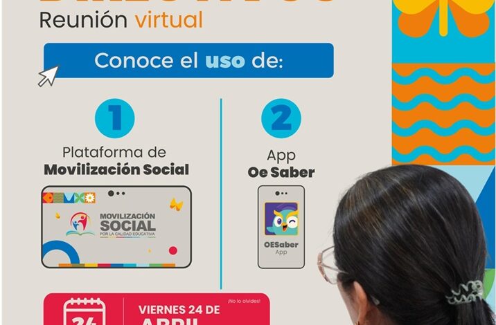 La Gobernación del Magdalena, a través de la estrategia de Movilización Social por la Calidad Educativa, invita a los directivos docentes de las 153 Instituciones Educativas Departamentales a participar en una reunión virtual que se llevará a cabo el próximo viernes 24 de abril a las 3:00 p. m., con el fin de socializar dos herramientas digitales clave que acompañarán el desarrollo del proyecto durante la vigencia 2026, orientadas al fortalecimiento de los procesos académicos de los estudiantes y al acompañamiento pedagógico de las instituciones.